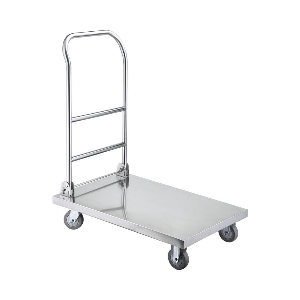 Transportna kolica s platformom dimenzija 82x52x97cm, idealna za jednostavan i siguran prijevoz manjih tereta ili paketa u restoranima, barovima, slastičarnicama, trgovinama i sličnim objektima. Čvrsta konstrukcija osigurava dug vijek trajanja, dok ergonomska ručka omogućuje udobno rukovanje i bolju kontrolu tijekom korištenja. Pogodna su za profesionalnu, kao i za kućnu upotrebu.